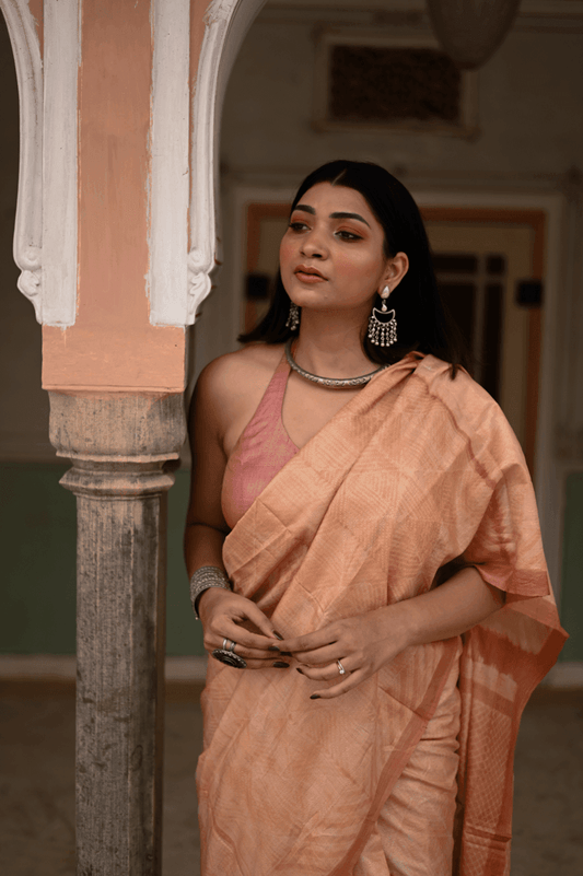 Dusty Peach Shibori Tussar Silk Saree
