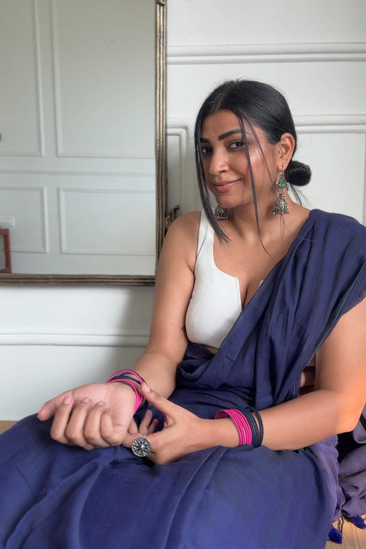 Sold outDeep Blue Handloom Linen Saree