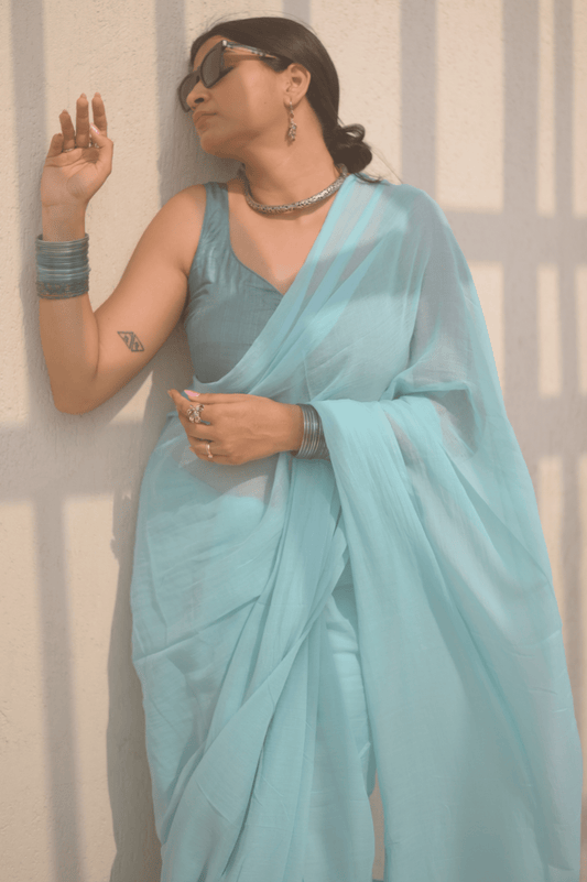 Colour nerve looked so smooth & so breezey . It’s like your Frozen moment in a saree . The fabric is soft and the colour just adds to the fabric . Beautiful saree . And so affordable . A must buy from them and they also have a baby pink colour saree , try that out too yow won’t regret it . Thank you so much