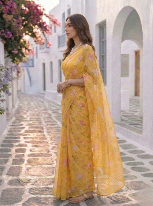 -34% OFF14 reviewsLiora - Yellow Floral Print Pure Chiffon Saree