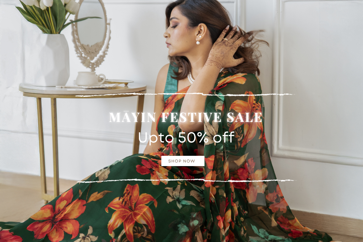 Chiffon sarees are elegant, sheer, and flow beautifully, adding effortless grace to any occasion. MĀYIN India offers hand-embroidered and lightweight chiffon sarees perfect for weddings, receptions, and evening parties. Their delicate drape and subtle shimmer make them timeless choices for festive wear.