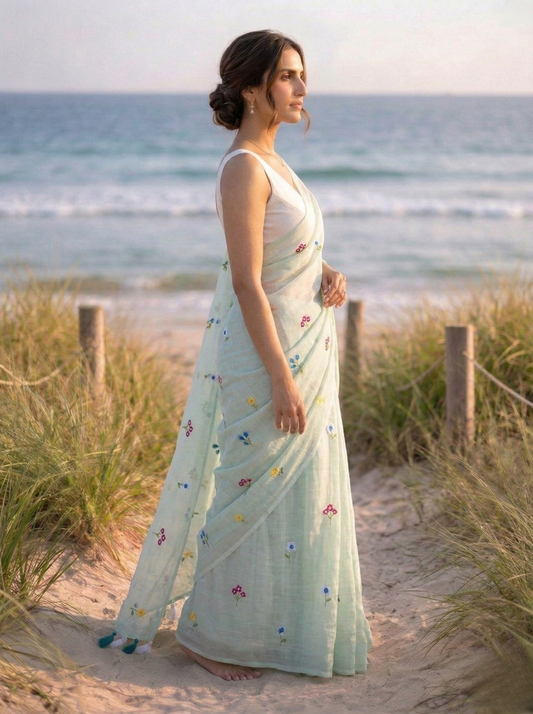 -37% OFFNo reviewsGardenalia Mint - Hand Embroidered Mulmul Cotton Saree