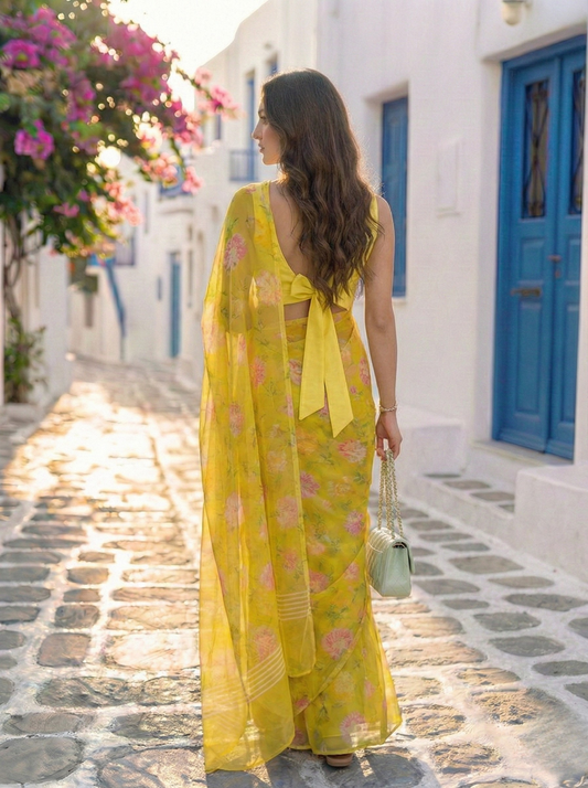 -32% OFF7 reviewsLiora - Yellow Floral Print Pure Chiffon Saree