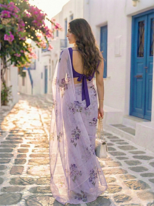 -32% OFF7 reviewsSolenne - Lavender Floral Print Pure Chiffon Saree