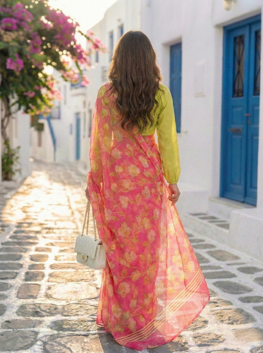 -32% OFF7 reviewsElysia - Pink Floral Print Pure Chiffon Saree