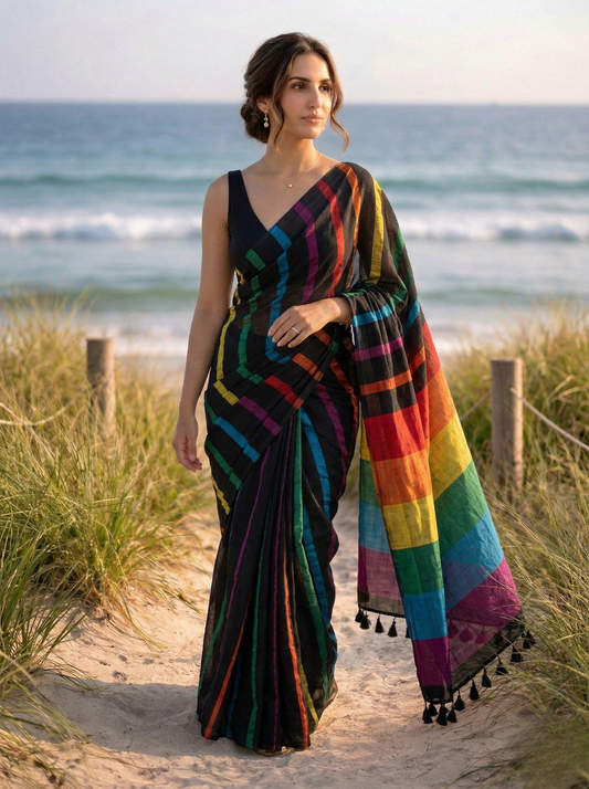 -43% OFFNo reviewsCool Girl - Multicolour Striped Mulmul Cotton Saree