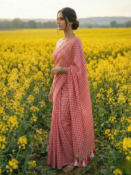 -23% OFFNo reviewsPoppy Seed - Red Gingham Mulmul Cotton Saree