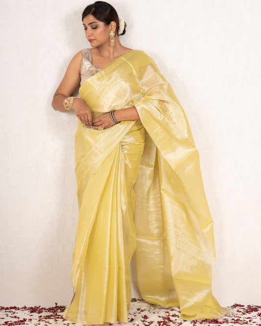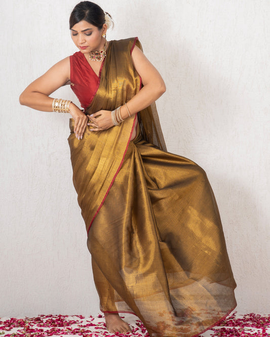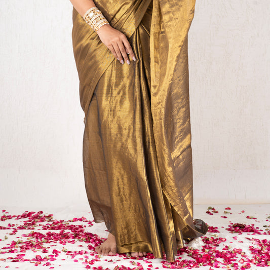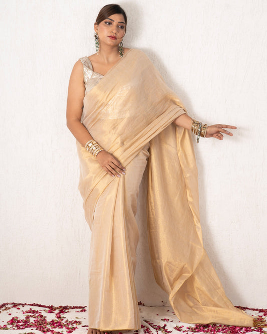 Sold outChampagne Gold Linen Tissue Saree