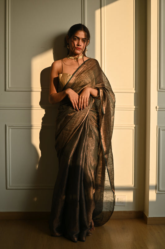 -42% OFFOlive Handloom Linen Tissue Saree