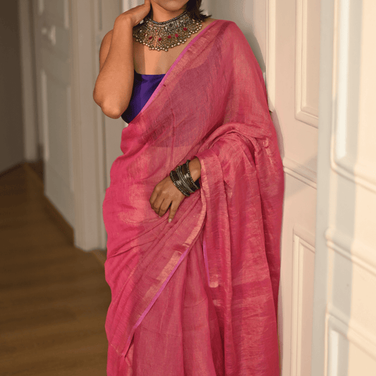 Blush Pink Handloom Linen Tissue Saree