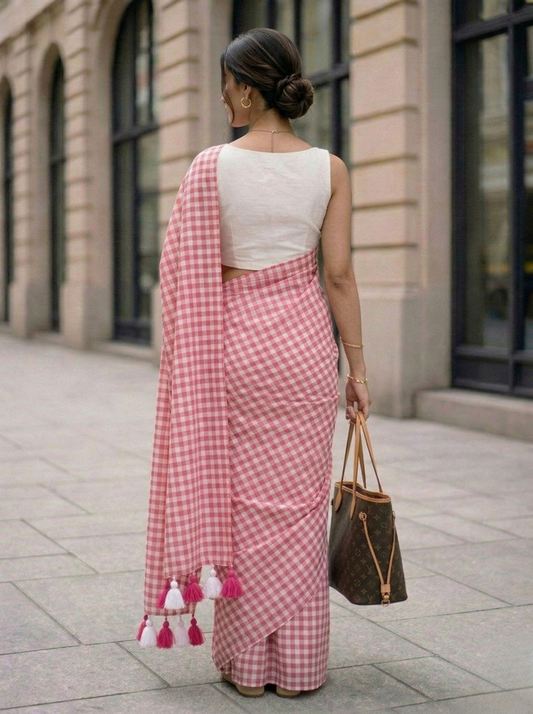 -23% OFFNo reviewsPoppy Seed - Red Gingham Mulmul Cotton Saree