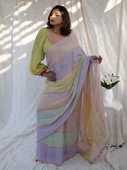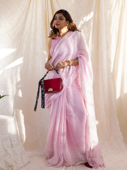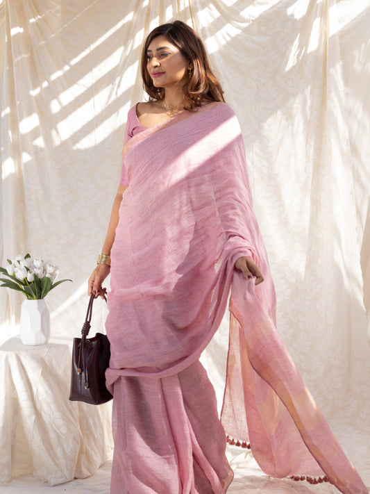 -41% OFFCoral Mist - Plain Pink Mul Saree