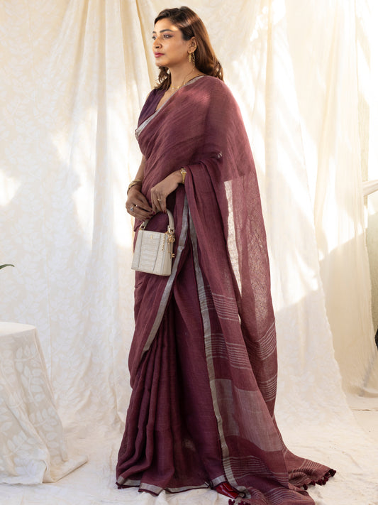 -33% OFFMauve Melody - Plain Pink Mul Saree