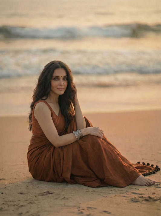Sold outToasted Almond - Plain Brown Mul Cotton Saree