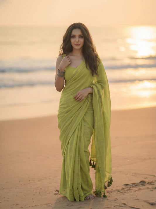 -39% OFF40 reviewsOlive Oasis - Plain Green Mul Cotton Saree