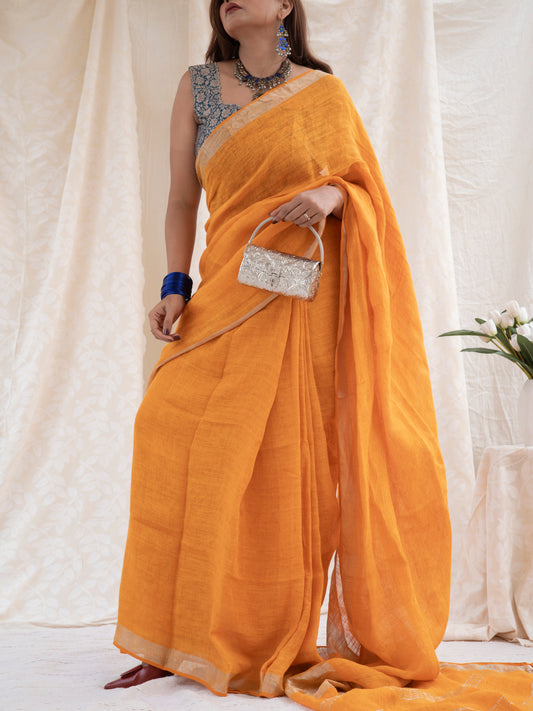 -34% OFFOrganic Yellow Bagru Mulmul Saree