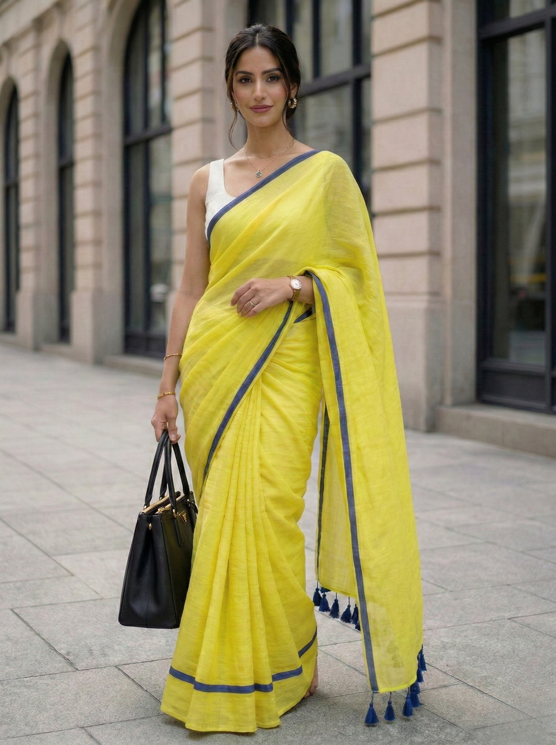 Wrap yourself in the cloud-like softness of our Mulmul Cotton Saree – a dreamy blend of comfort and charm. Handwoven with love in Bengal, this saree comes in the cutest butter yellow hue that brightens up your day without trying too hard.