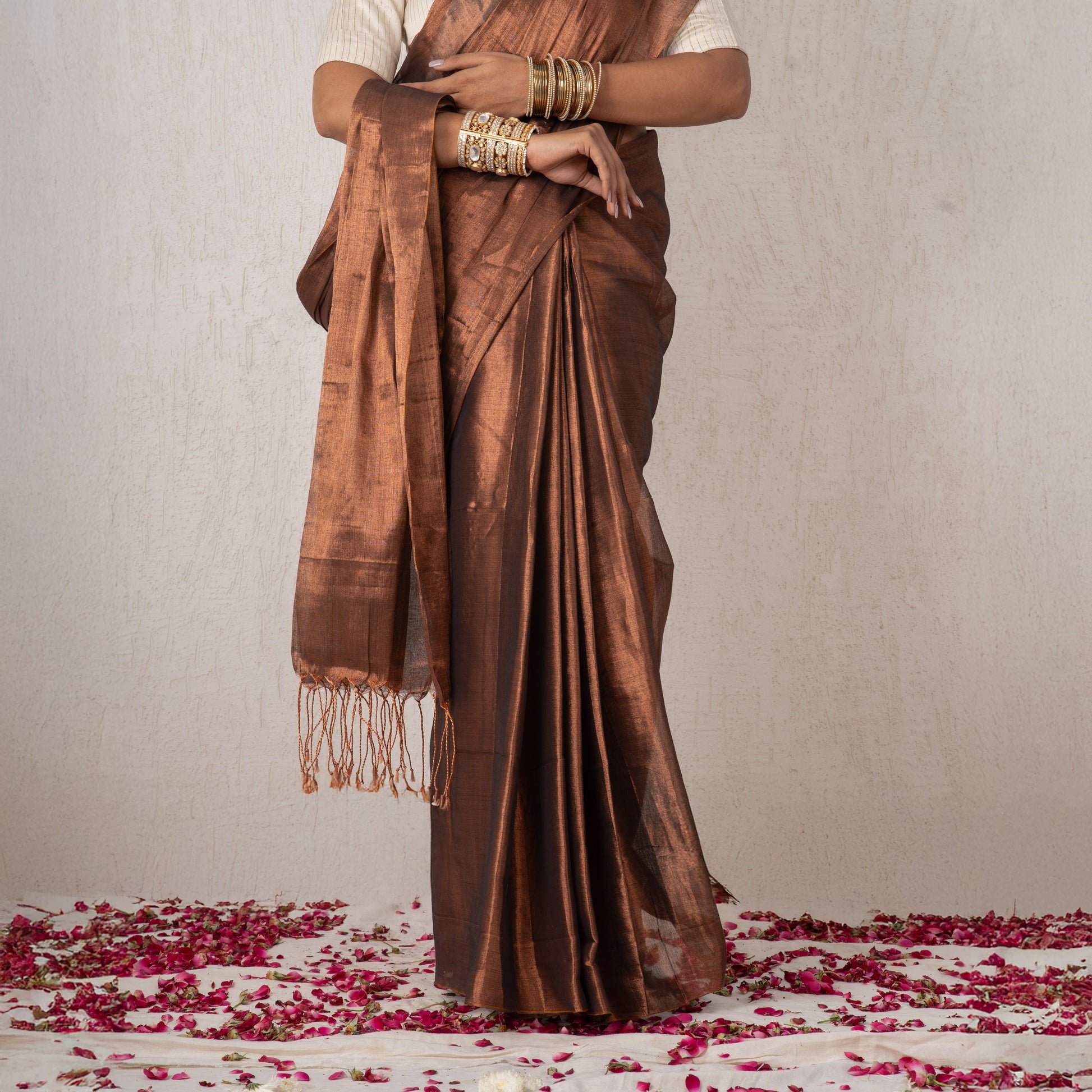 Whether you're attending a special occasion or simply want to elevate your everyday look, this saree is sure to make you stand out in the crowd. So why wait? Embrace the timeless allure of our gold Tissue Saree and make a statement wherever you go.
