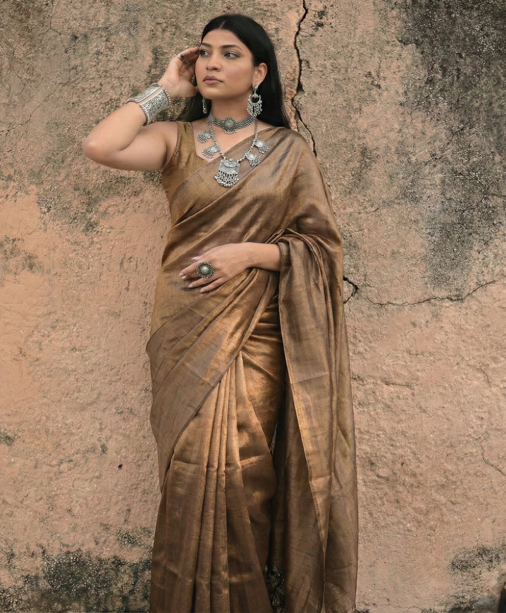 Whether you're attending a special occasion or simply want to elevate your everyday look, this saree is sure to make you stand out in the crowd. So why wait? Embrace the timeless allure of our gold Tissue Saree and make a statement wherever you go.