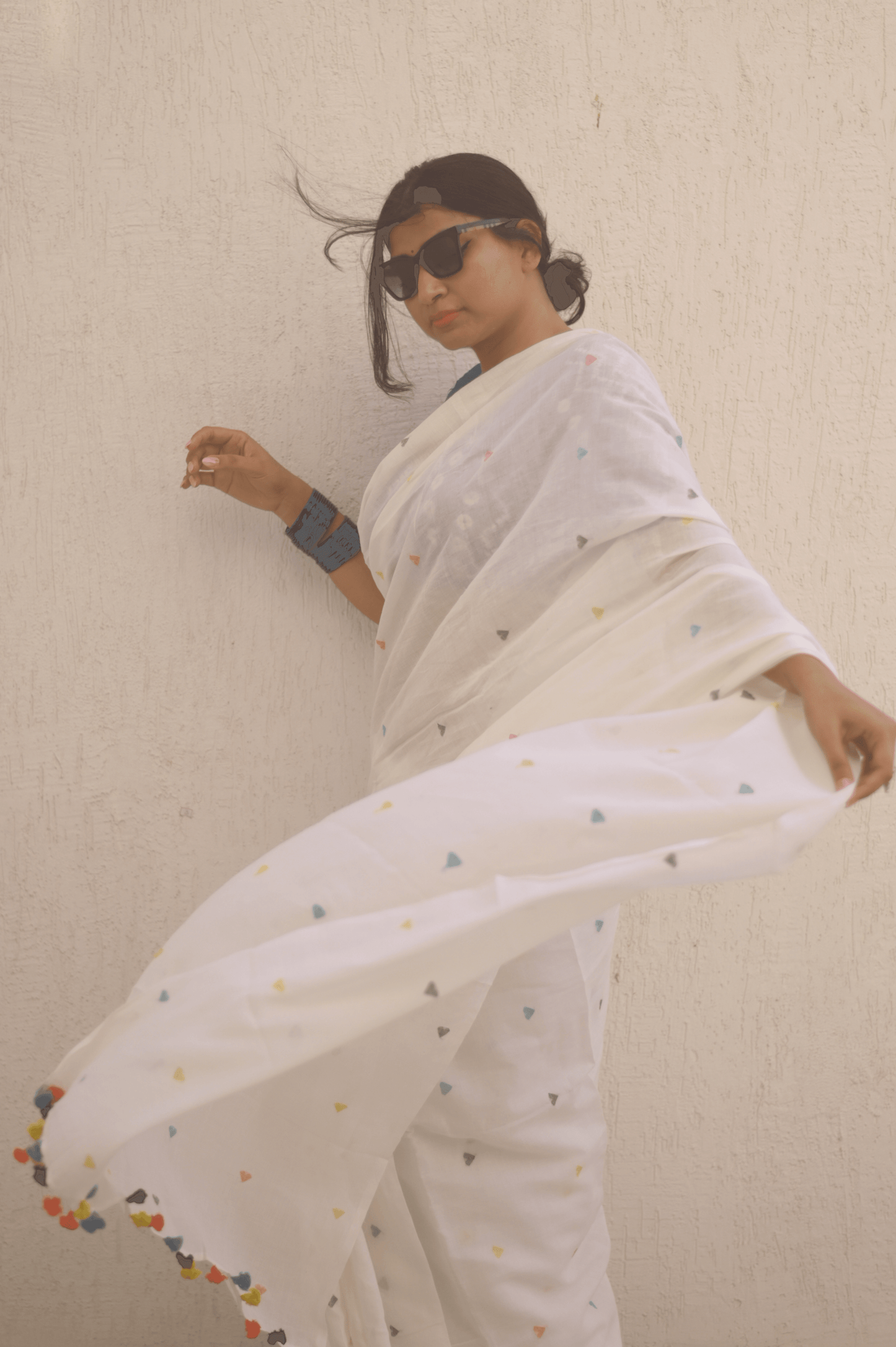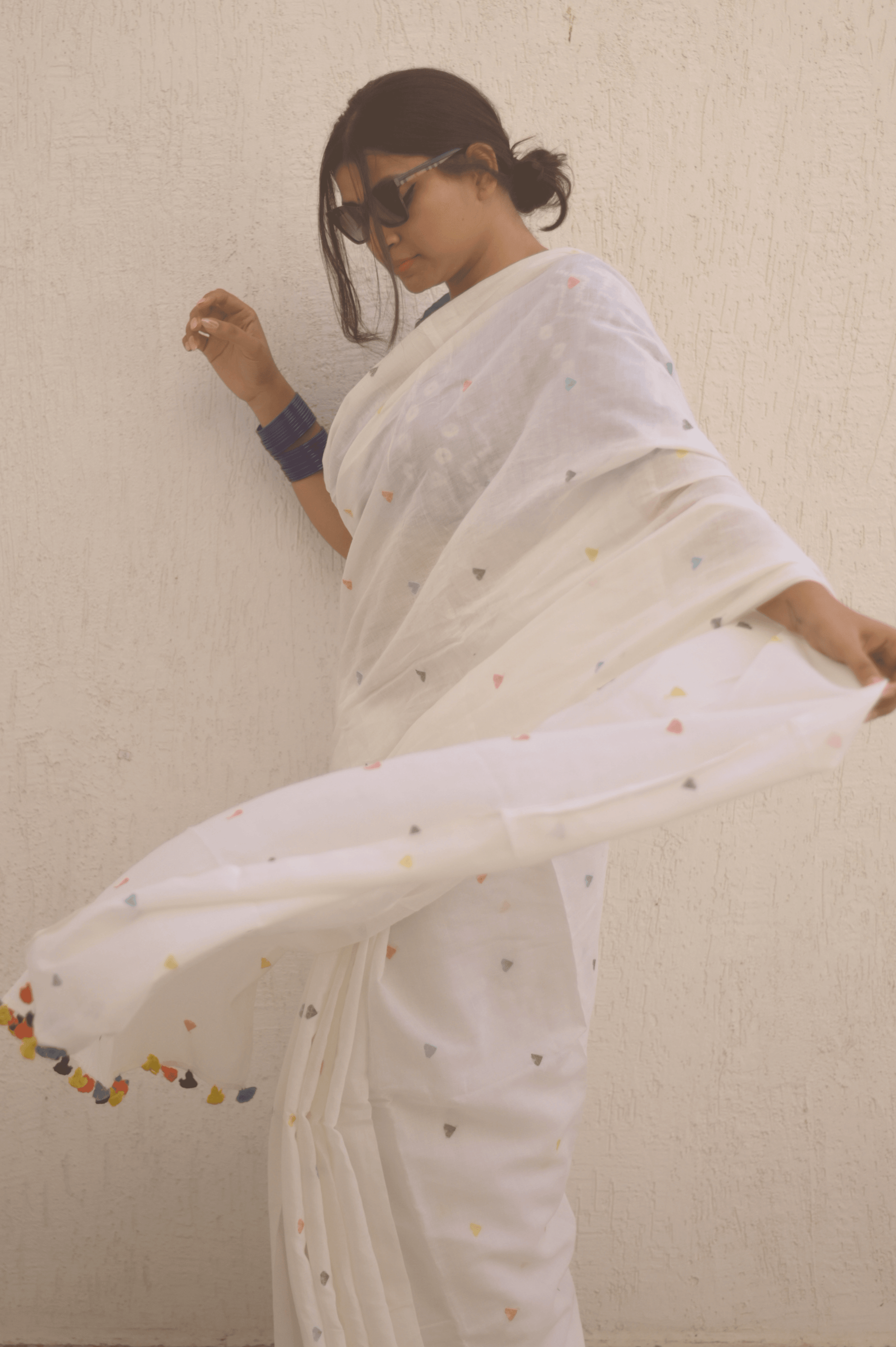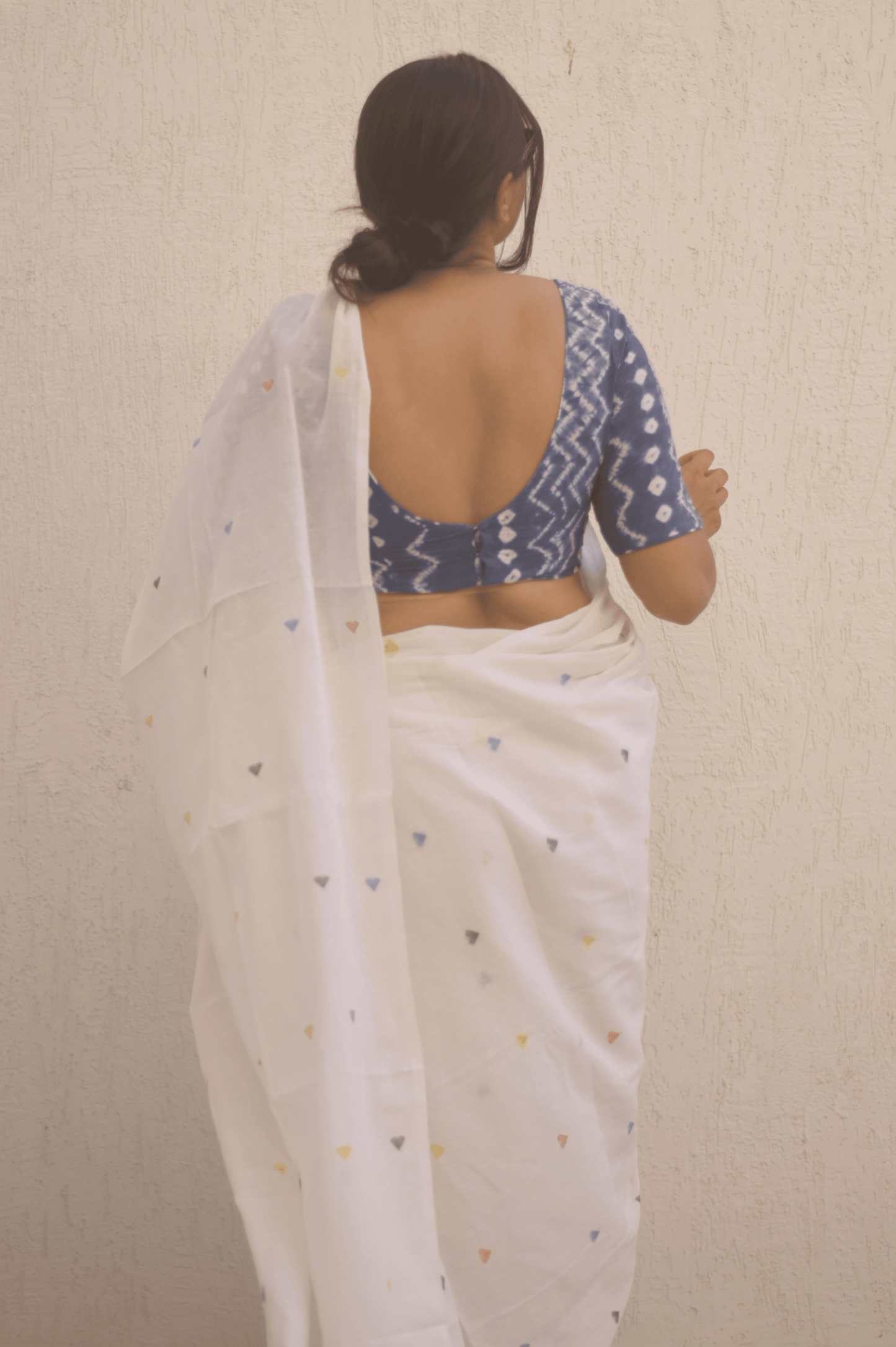Step into timeless elegance with our exquisite handwoven Jamdani Saree, adorned with hundreds of hearts in multiple colours on a bed of finest muslin cotton. The comfort of the ultra soft and easy to drape pure muslin cotton and the elegance of the handwoven motifs are sure to earn you compliments while you feeling at your best. Elevate your style with this luxurious saree and embrace the essence of heritage with every graceful movement. The saree has taken 90+ working hours on the handloom.