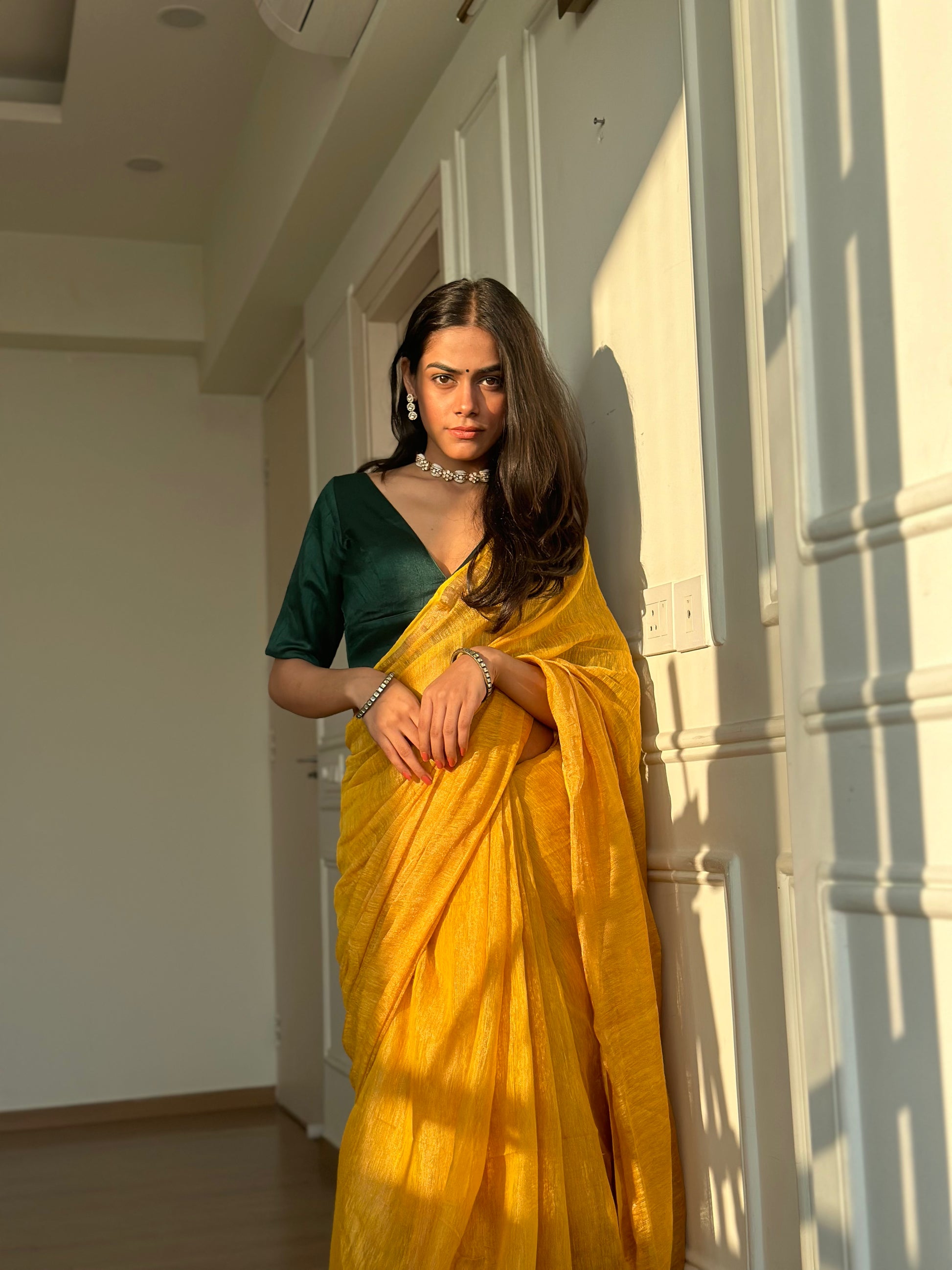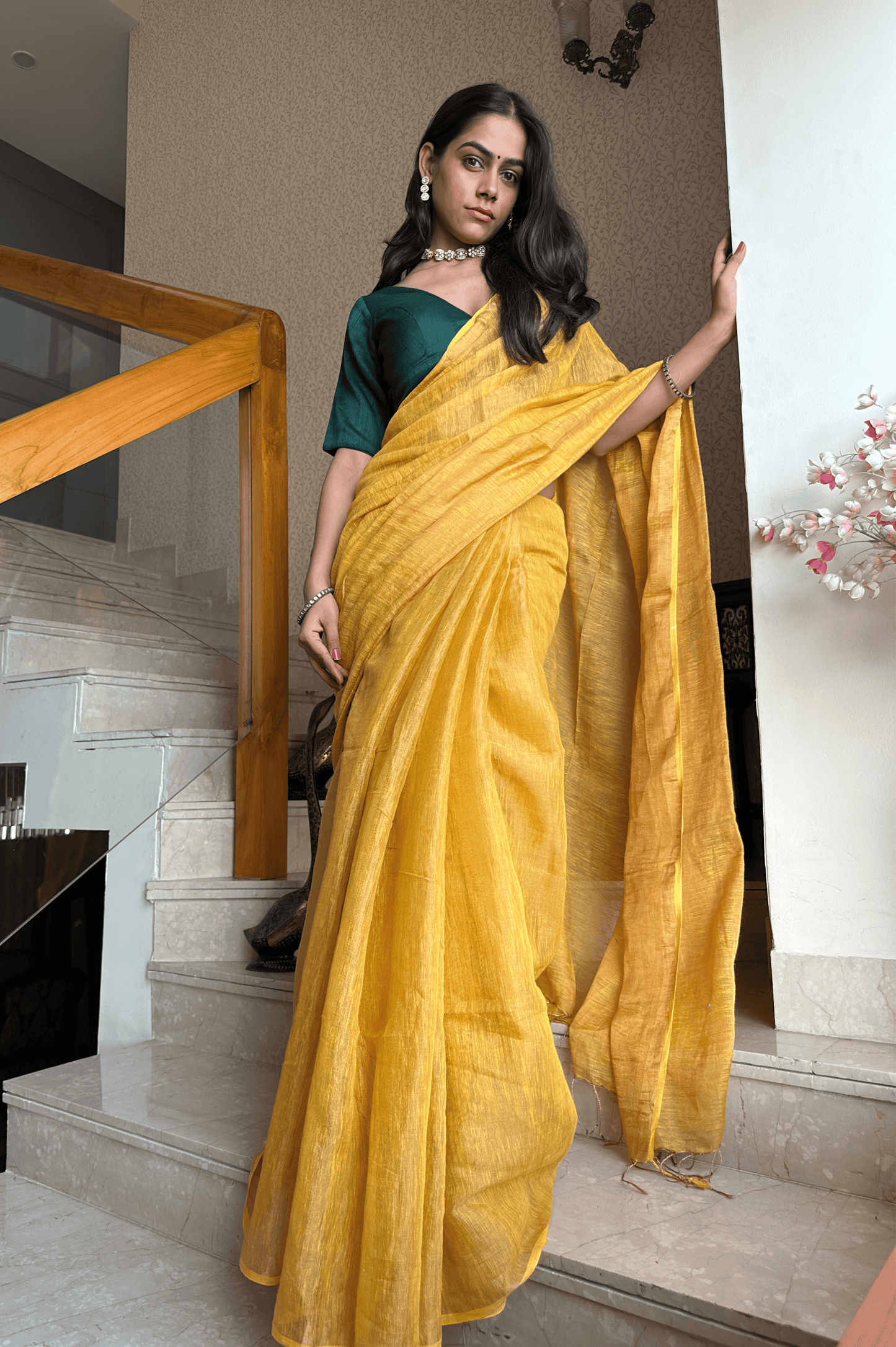 Experience timeless elegance with our exquisite Madhuri Handloom Linen Saree. Handwoven by skilled artisans in Bengal, this masterpiece is crafted from the finest pure linen, ensuring unparalleled comfort and breathability. Each saree boasts unique, evergreen designs intricately woven with delicate zari highlights, adding a touch of shimmering luxury. Whether you're attending a special occasion or simply embracing everyday grace, this versatile saree is the perfect companion for any season. Indulge in the luxury of pure, handwoven elegance with our handwoven linen drapes.