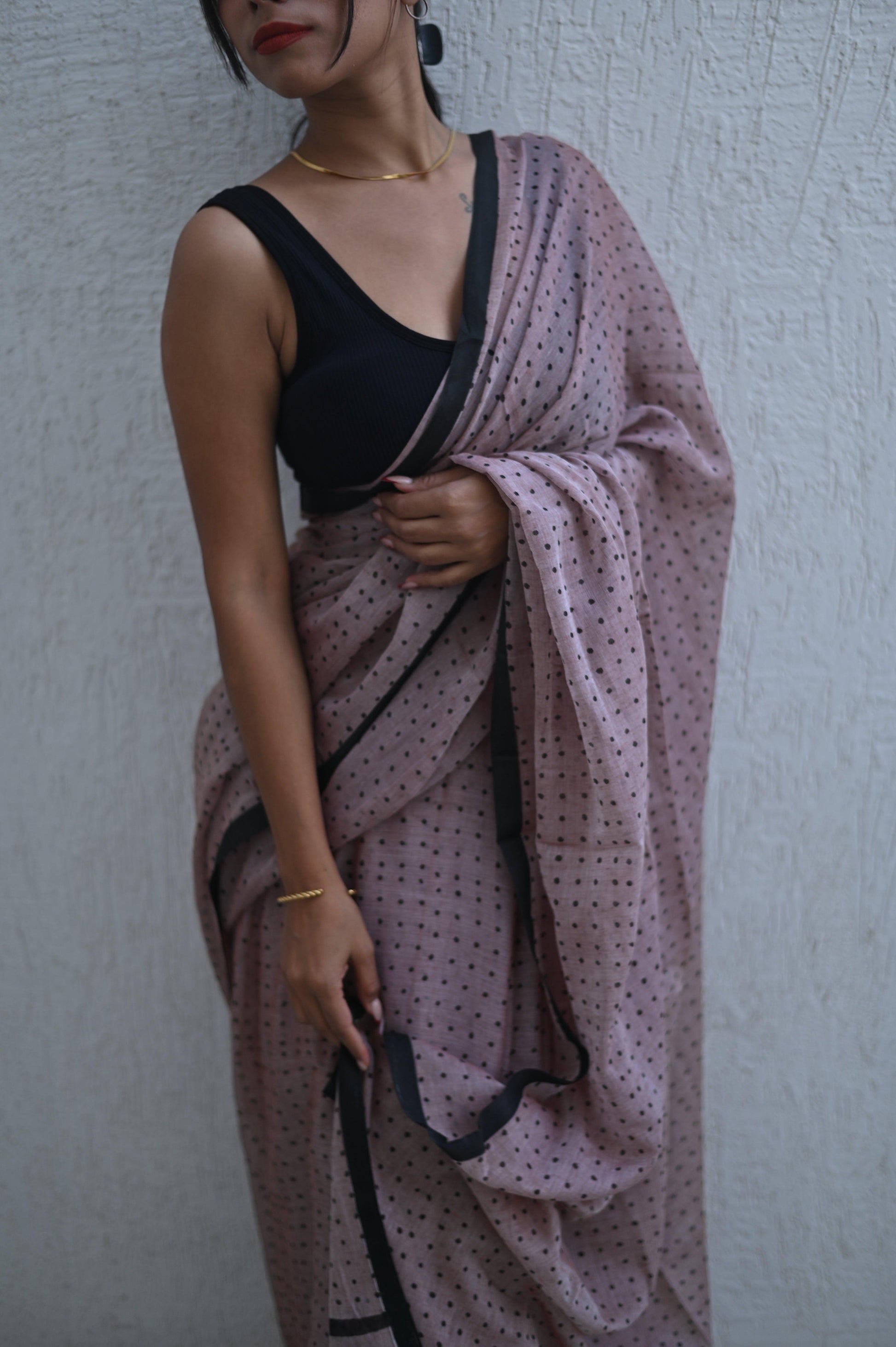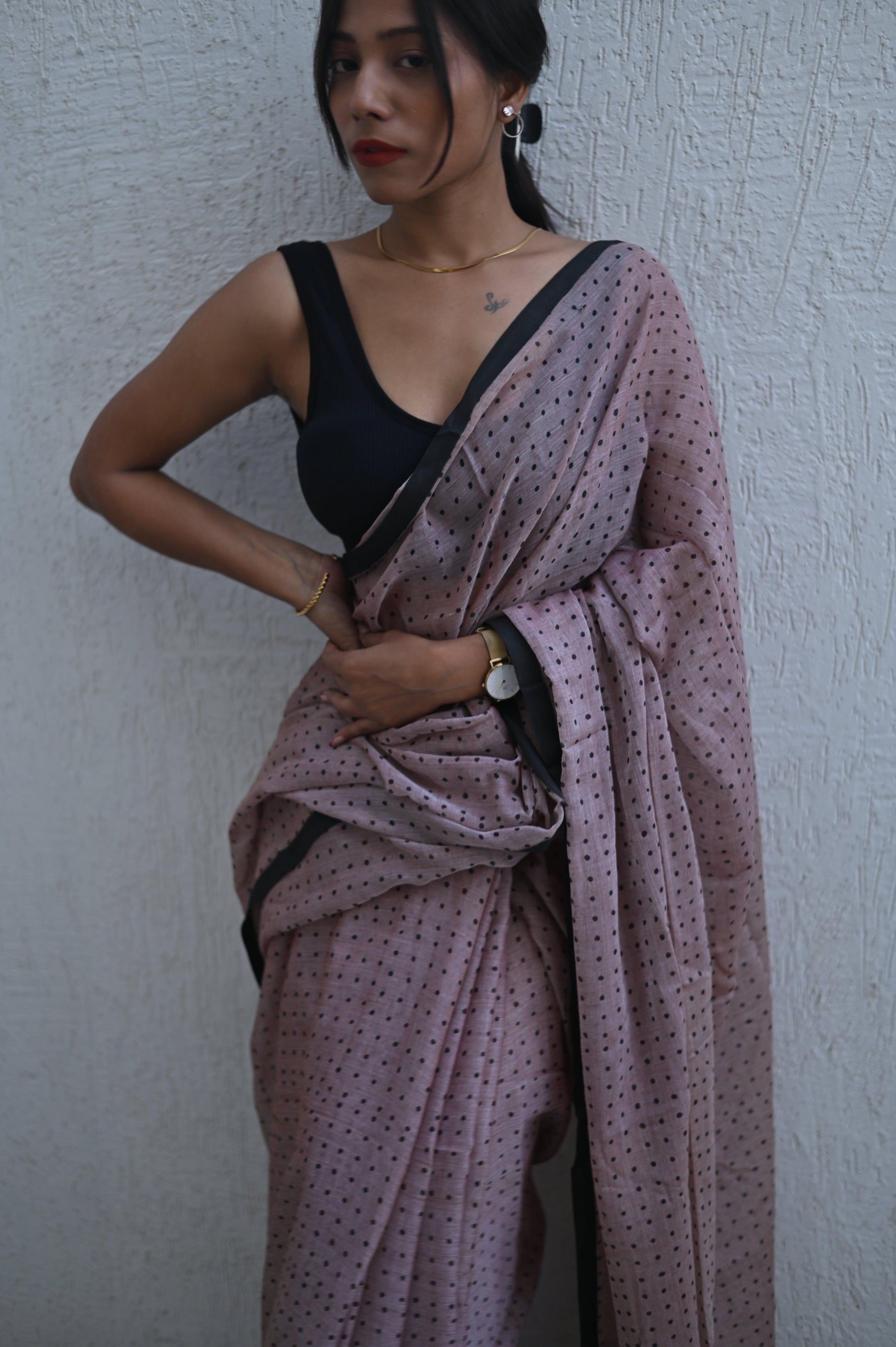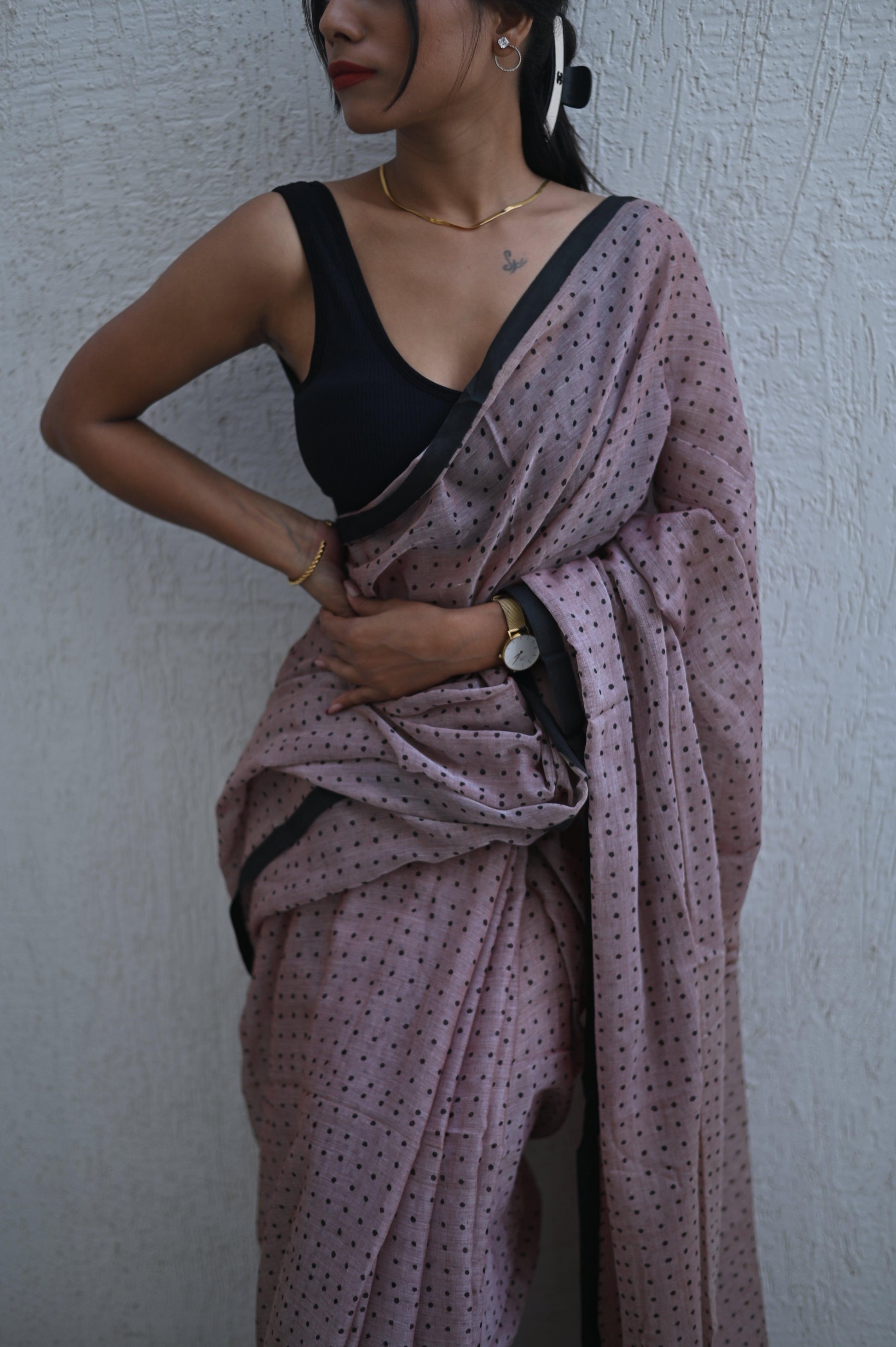 Introducing our ethereal handblockpainted polka Mul Cotton Saree, a timeless masterpiece meticulously crafted with the utmost care and dedication. Handspun & handwoven with the finest mul cotton thread, this saree epitomizes elegance and sophistication. Envision draping yourself in the sheer splendor of this saree, feeling the delicate weave enveloping you in a cocoon of comfort and grace.