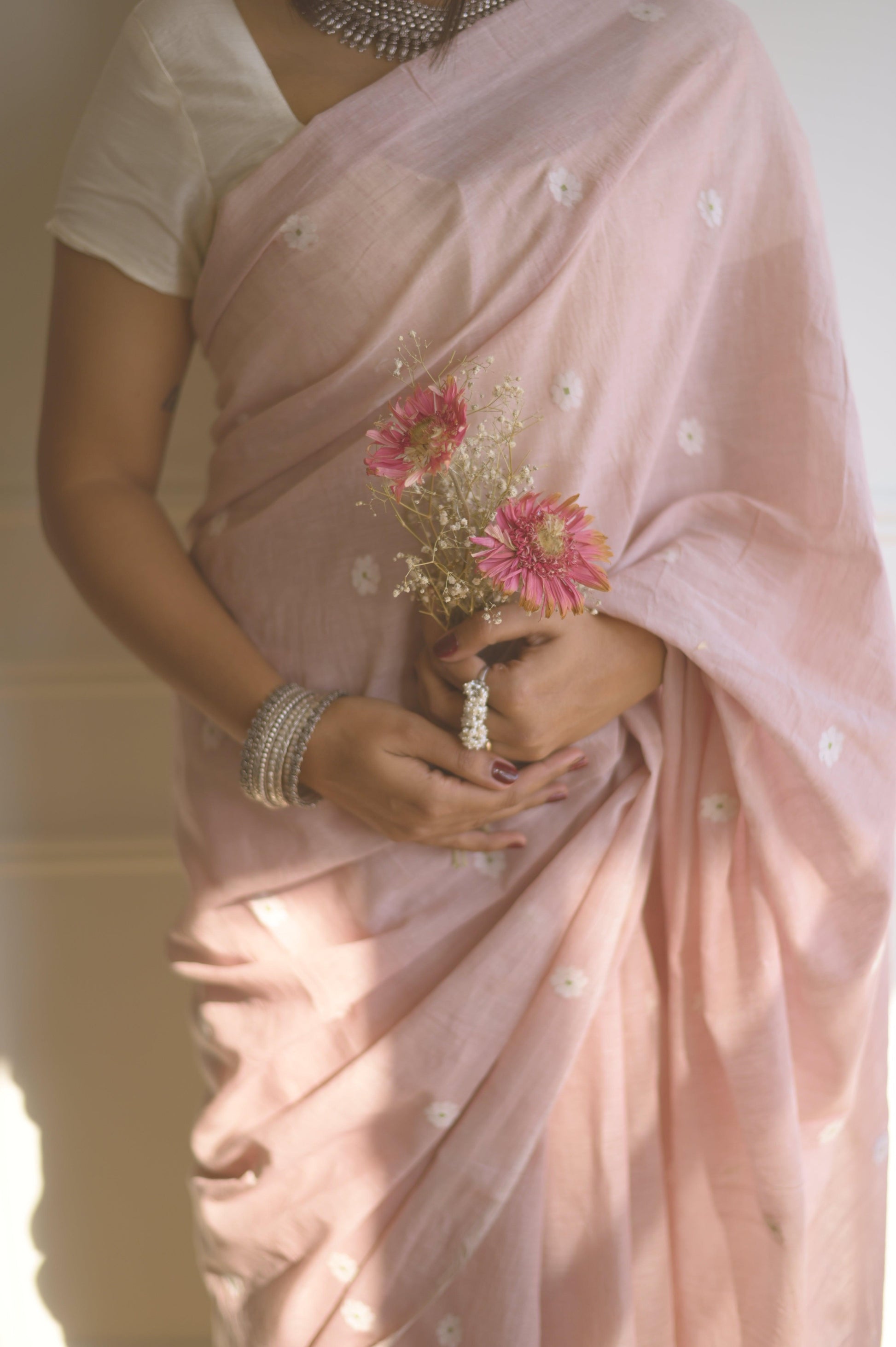 Step into timeless elegance with our exquisite handwoven Jamdani Saree, adorned with intricate floral motifs that exude sophistication. Each thread tells a story of craftsmanship and tradition, making every drape a masterpiece of artistry. Elevate your style with this luxurious saree and embrace the essence of heritage with every graceful movement. The saree has taken 90 working hours on the loom.