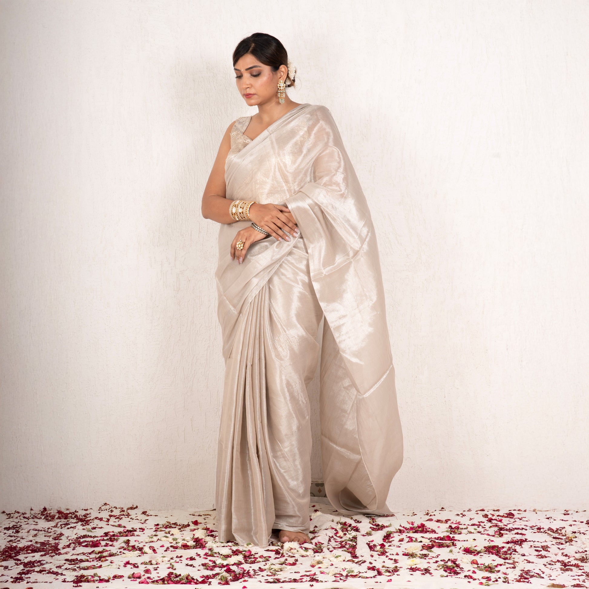 Whether you're attending a special occasion or simply want to elevate your everyday look, this saree is sure to make you stand out in the crowd. So why wait? Embrace the timeless allure of our gold Tissue Saree and make a statement wherever you go.