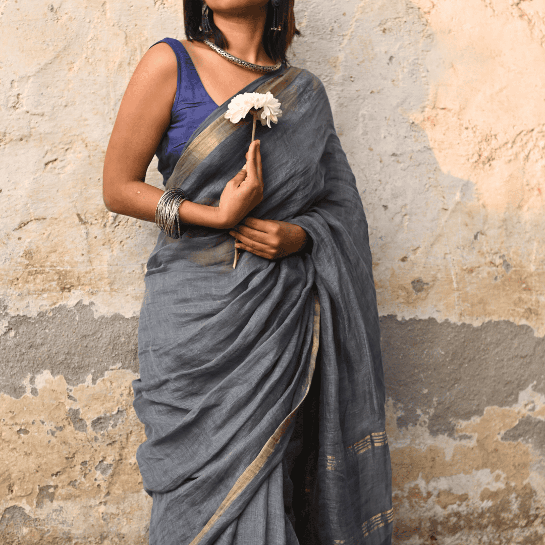 Steel Grey Handloom Linen Saree