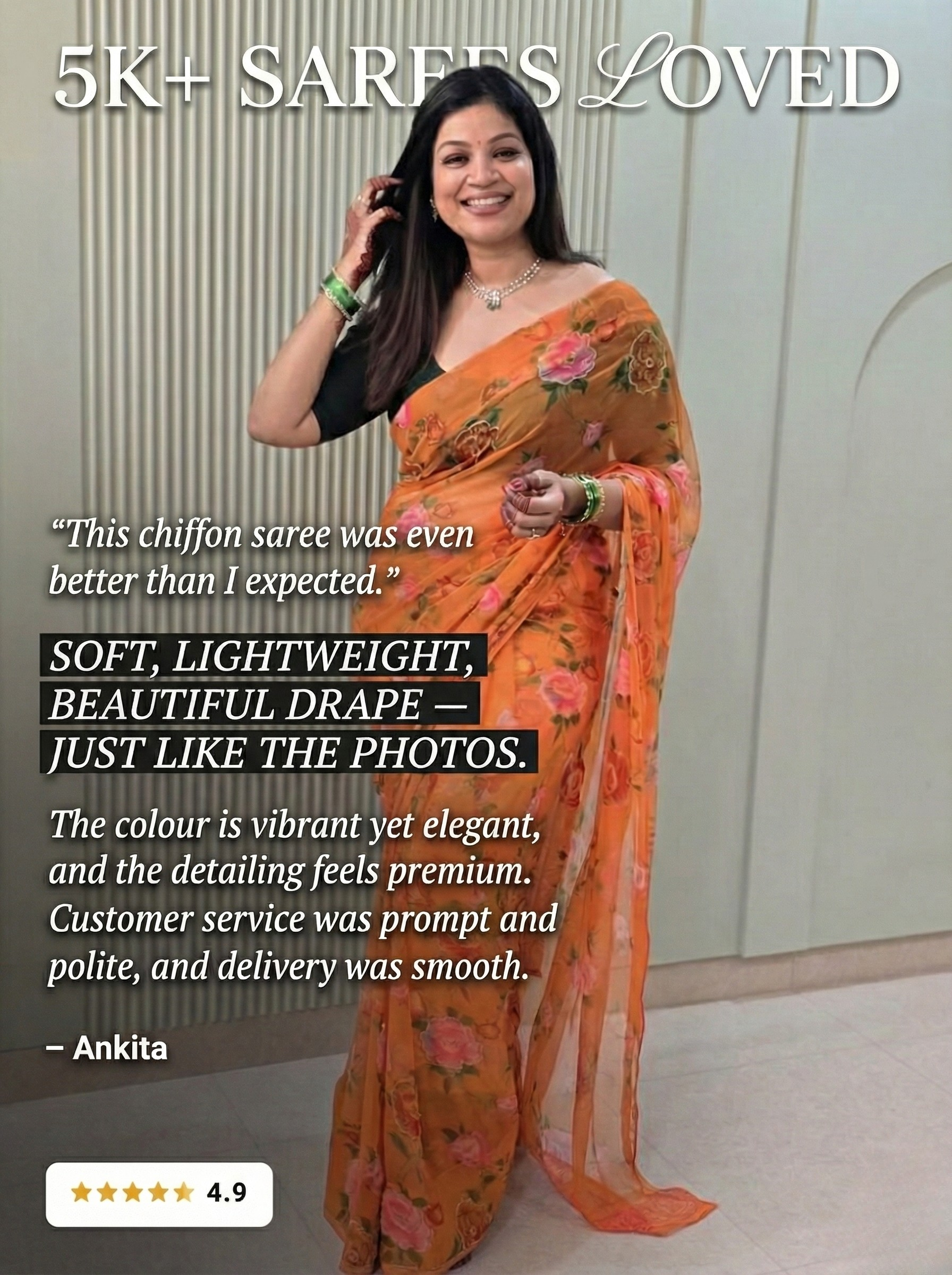 I ordered the orange chiffon sari from Mayin, and I’m genuinely so happy with my purchase! The fabric is soft, lightweight, and drapes beautifully — exactly as shown in the pictures. The color is vibrant but elegant, and the overall finish and detailing feel premium.