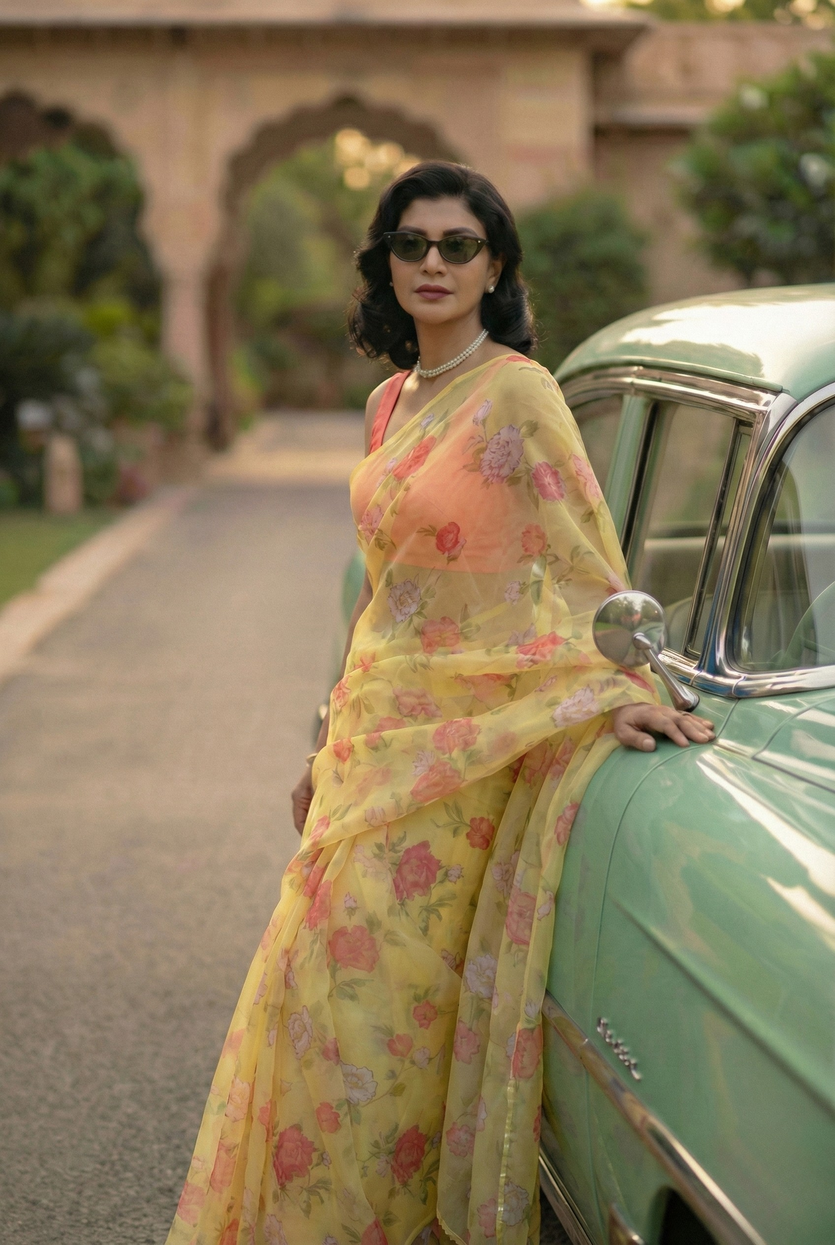 Experience the allure of vintage floral artistry with our Italian chiffon saree—where tradition meets modern elegance!