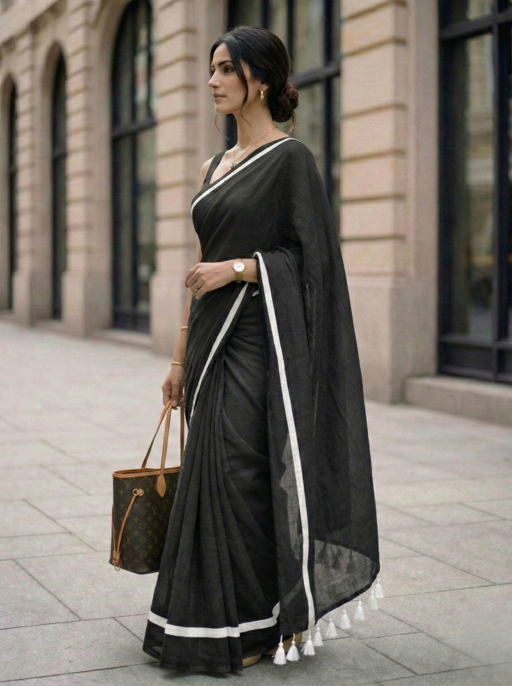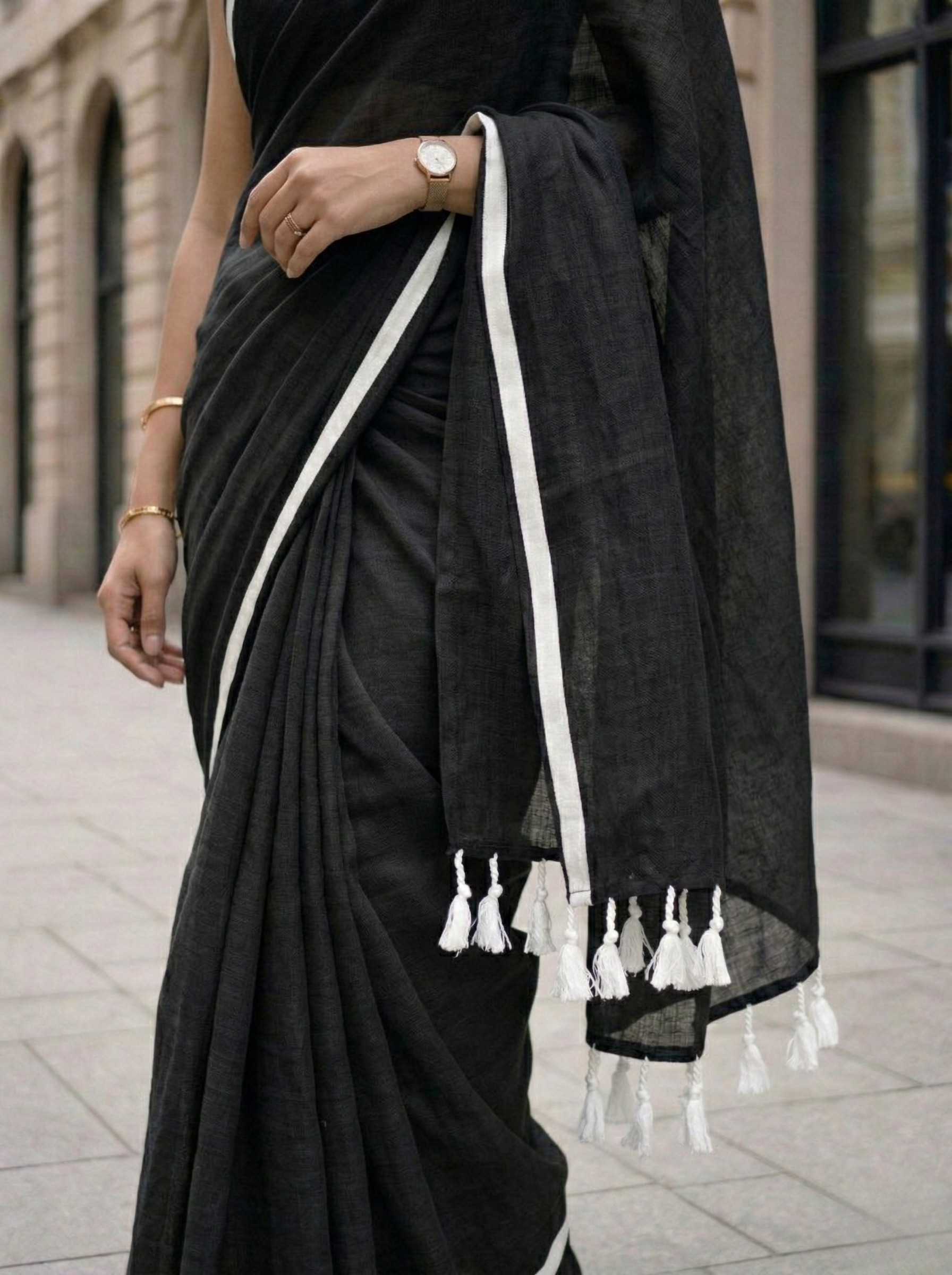 Wabi Sabi - Black Mulmul Cotton Saree with White Border