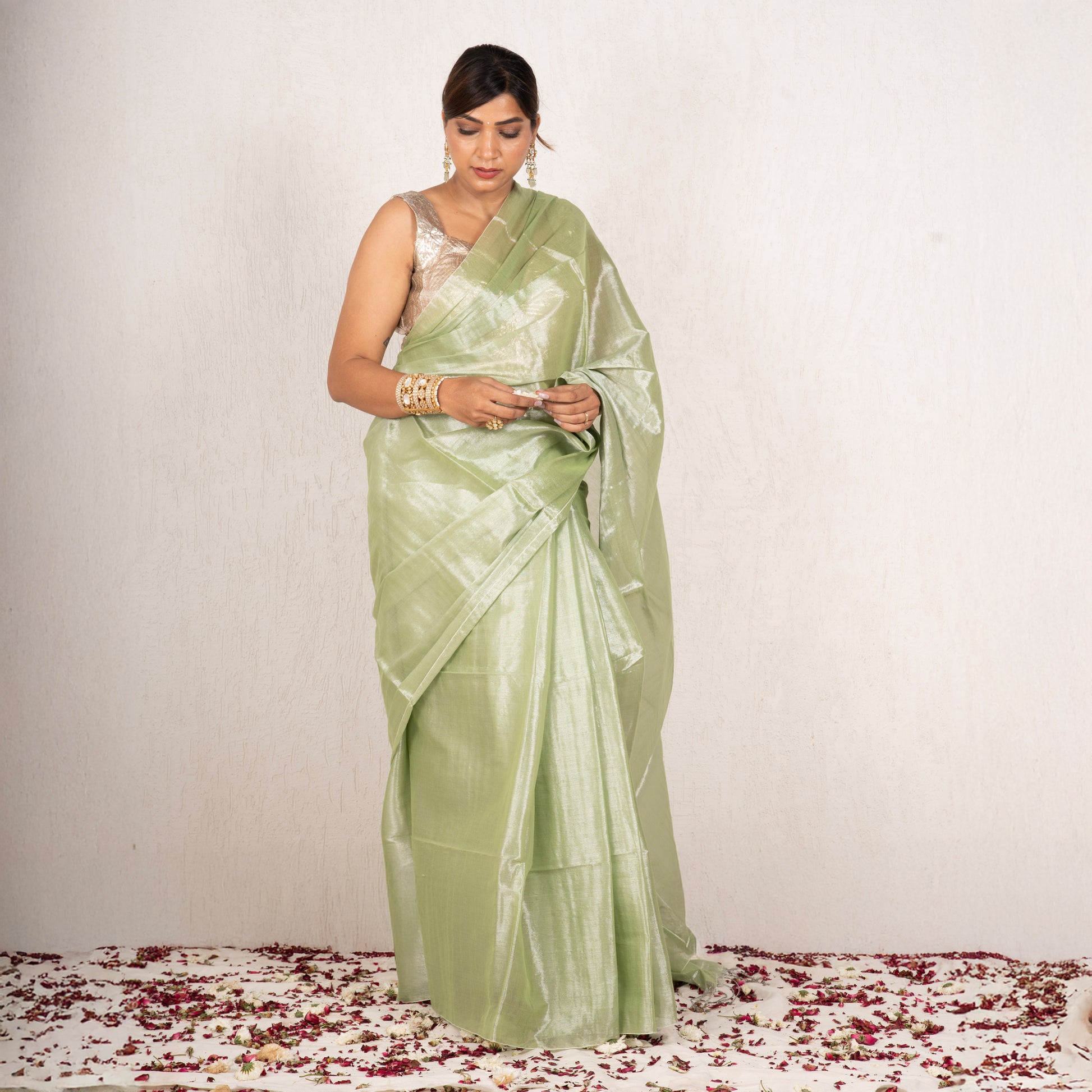 Whether you're attending a special occasion or simply want to elevate your everyday look, this saree is sure to make you stand out in the crowd. So why wait? Embrace the timeless allure of our gold Tissue Saree and make a statement wherever you go.